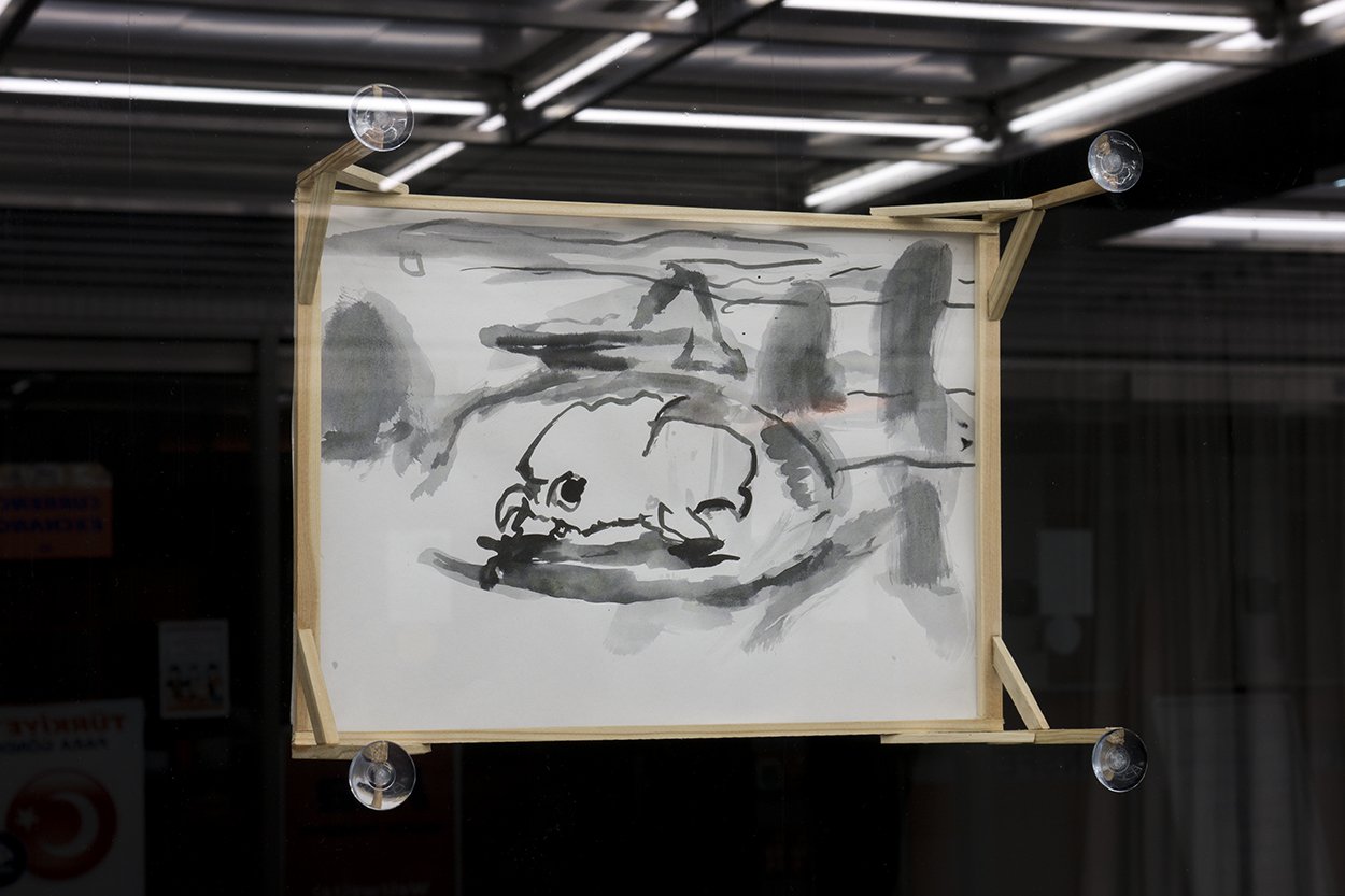 installation views DORF at Regatta2, ink drawings on paper, wood, suction cups, video-projection, 2020 Düsseldorf Im Vollbildmodus anzeigen Im Vollbildmodus anzeigen Im Vollbildmodus anzeigen Im Vollbildmodus anzeigen Im Vollbildmodus anzeigen Im Vollbildmodus anzeigen Im Vollbildmodus anzeigen Im Vollbildmodus anzeigen Im Vollbildmodus anzeigen